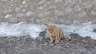 山西一高速路边发现一只小狮子
