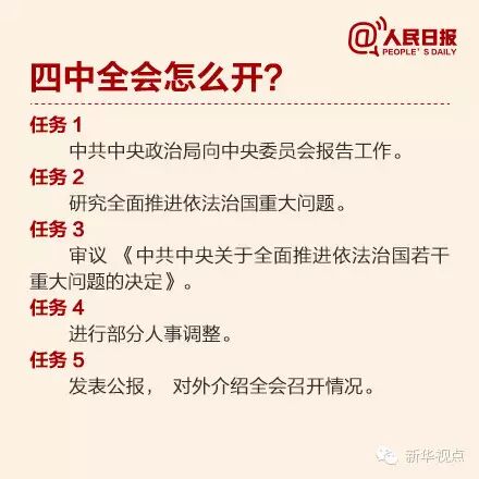 看到这里,问题来了:什么是四中全会?四中全会怎么开?四中全会有哪些看点?四中全会又将给我们的生活带来哪些变化?