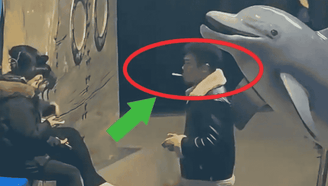 男子海洋馆内抽烟被白鲸喷水“灭烟”