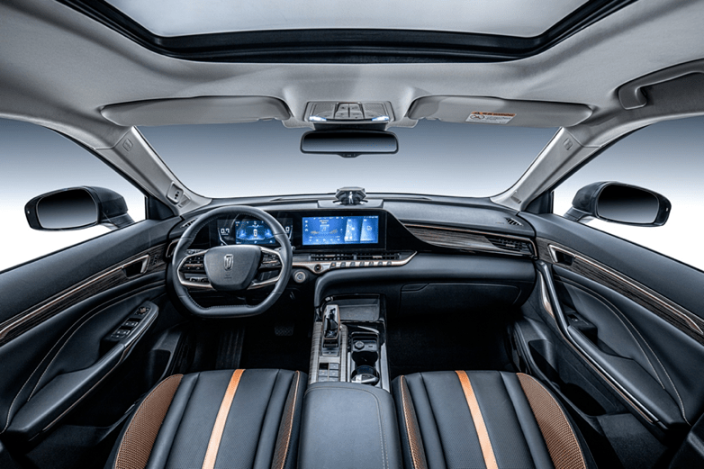 内饰方面,新车的视觉效果不错,大量线条错落有致,合理划分出不同功能区域的同时,还形成了环绕式的设计。新车着重于打造内饰的运动氛围的营造,能够看出在颜色的搭配方面更加亮眼,并且在中控区的材质用料方面也是更加轻薄。同时,新车采用了全液晶仪表盘加中控多媒体触摸屏的双12.3英寸曲面联屏设计,搭配双辐式多功能方向盘以及精致的电子换挡机构,再加上3D内饰氛围灯,整体细节让整车的乘坐感受非常好。