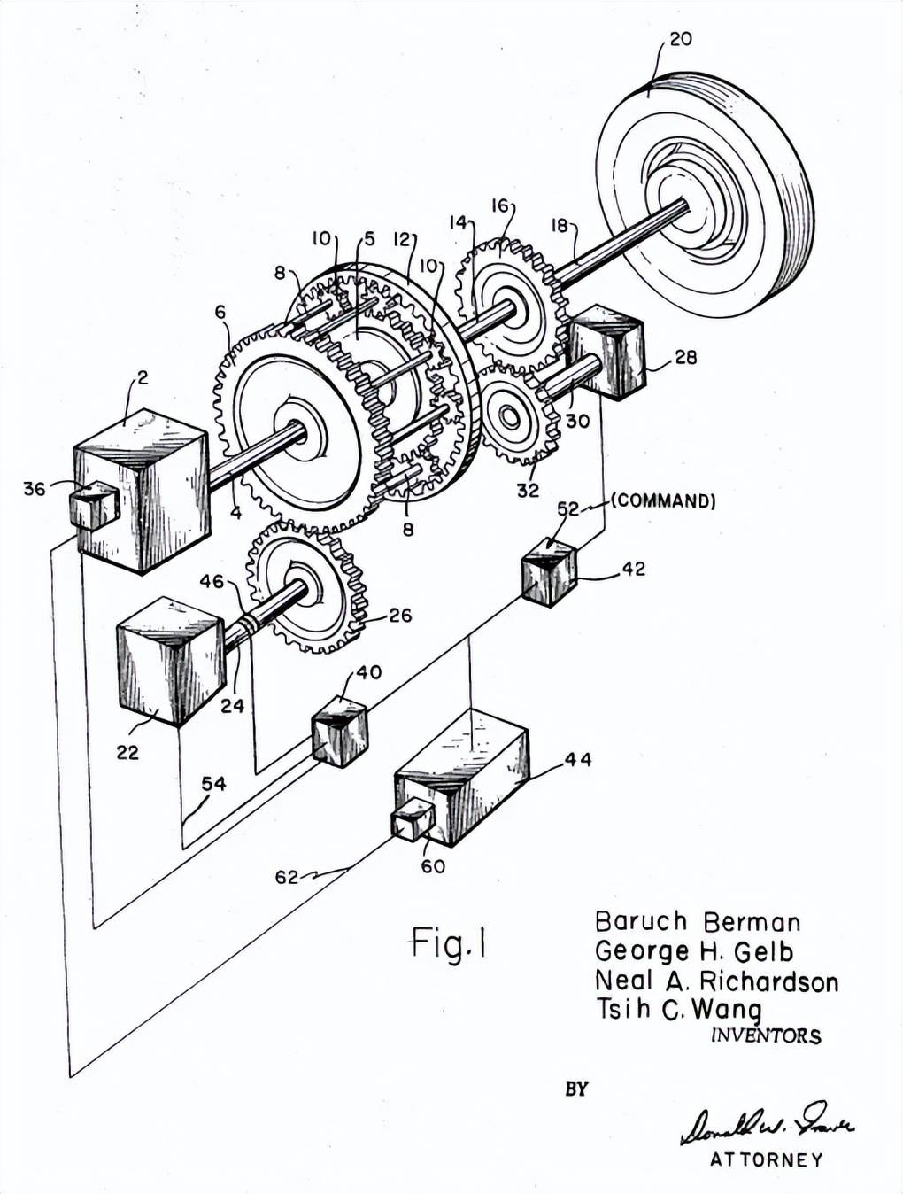 从美国天合公司申报的专利注册图中,我们可以看到,这一专利发明人一共有4位,其中还有一位工程师是华人。他们分别是:Baruch Berman(巴鲁克·伯曼)、George Howard Gelb(乔治·霍华德·盖尔布)、Neal Allen Richardson(尼尔·艾伦·理查森)、Tsih C Wang(音译:王志超)。美国天合公司注册这一专利,主要是为了给通用汽车公司提供混动技术配套,通用也因此获得了这一专利授权。当时美国的专利保护期是17年,这一专利1988年3月2号到期。此后丰田在美国注册THS行星排双电机混动系统专利的时间是1996年5月20号,因此并未侵犯天合公司的专利。