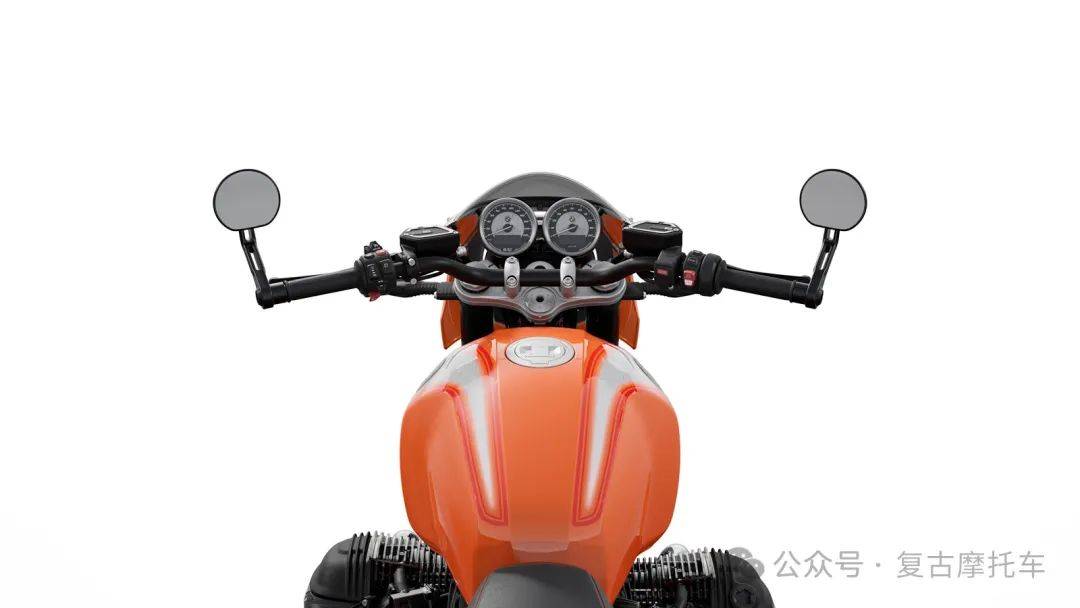 尽管R12S在技术上继承了R nineT的基础,但在外观设计上却极具怀旧感。BMW对这款车的设计可谓是“忠实重现”,圆形仪表、Lava Orange(熔岩橙)金属漆、以及全新设计的小型风镜和单座座椅,让人一眼便能联想到1975年R90S Daytona Orange版本的经典身影。这些设计细节无不透露出浓厚的70年代复古风情。