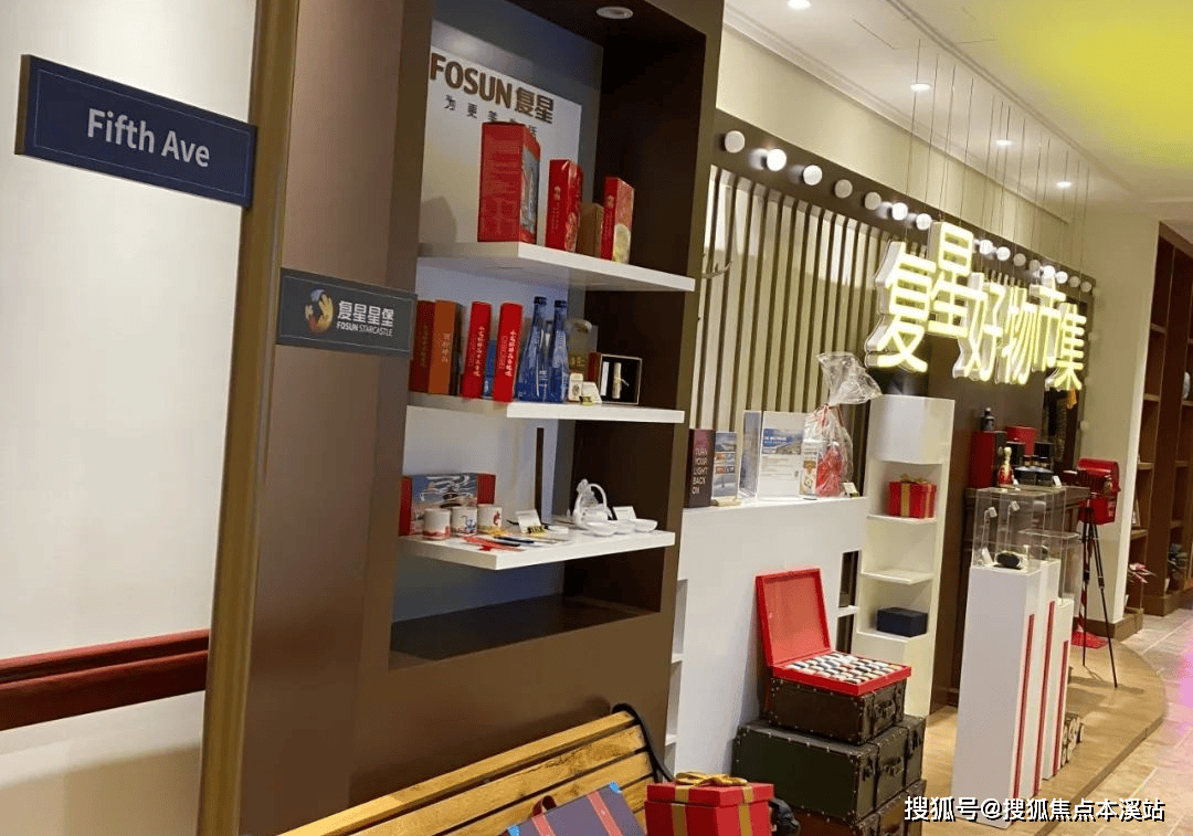 星堡中环养老社区参观动线上有一处“复星好物市集”,摆放了复星集团产业链上以及合作品牌的商品或服务展示,家属可以作为探望长辈的礼物进行采买。