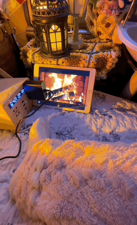 打开折叠式暖气,放在脚边,