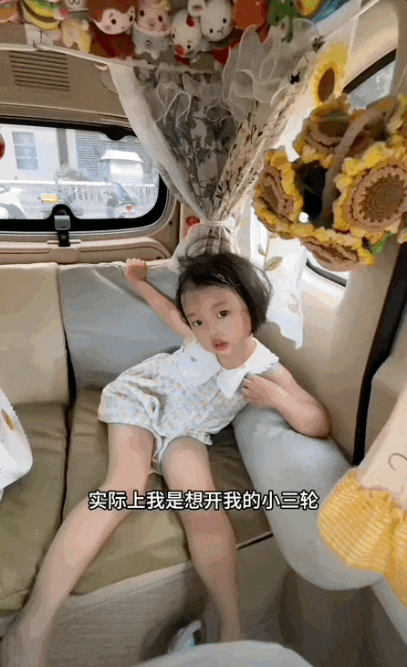 接送娃上学,孩子不用吹风淋雨,还能躺在车里看书吃零食。
