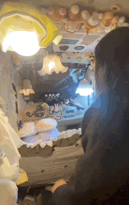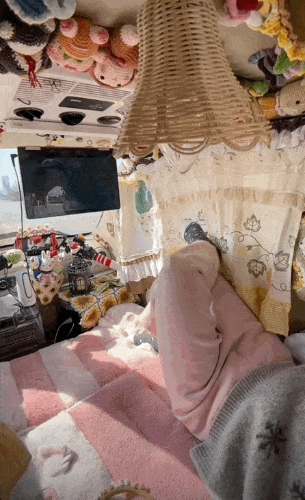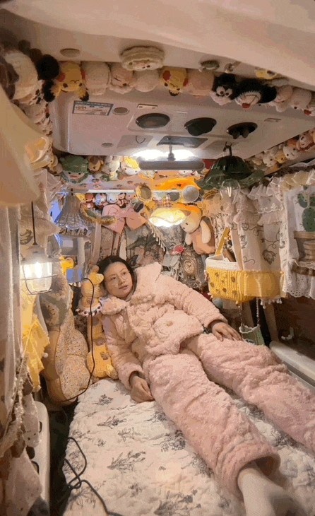 为了节省成本,大部分的内饰都是她自己动手做的。