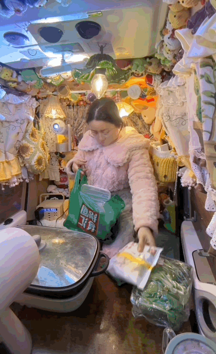而这辆不足两平米的老头乐,就是她的秘密基地。