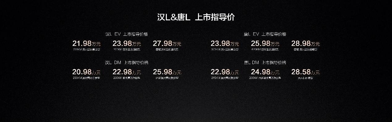 比亚迪划时代旗舰汉L唐L震撼上市,售价20.98万~28.98万元
