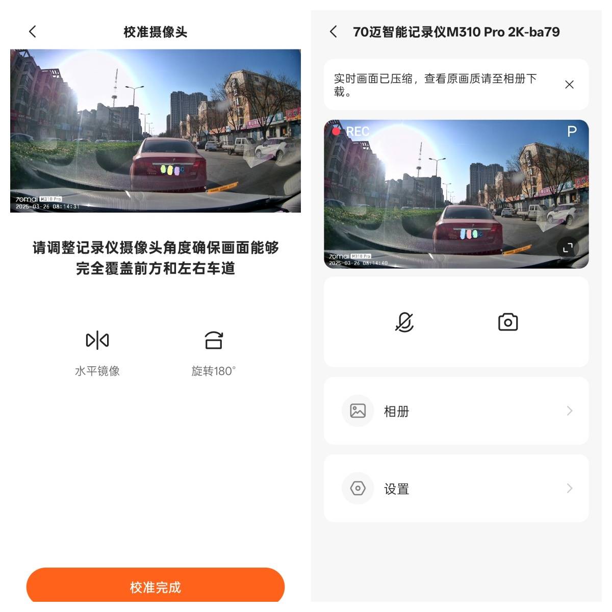 除了传统的触控操作外,70迈M310Pro 2K还支持语音控制功能,例如只需说出“我要拍照/录像”即可快速响应。此外,通过连接记录仪热点,用户无需消耗流量即可实时查看车内情况,非常适合用于检查安装效果或是远程查看车辆状态。