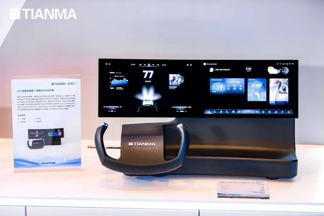 天马还发布了CMS电子后视镜系统和OLED轩辕曲面座舱两大创新技术。CMS电子后视镜系统采用双FPGA与双ISP硬件方案,实现30ms超低系统延迟,视野优化扩大30%,在恶劣天气环境下也能清晰可见,有效提升驾驶安全。而OLED轩辕曲面座舱则采用了双13寸多曲率一体黑OLED显示屏,可变曲率R800-2000mm,满足座舱内饰流线型造型需求,呈现出一体化OLED大屏的显示效果,为用户带来前所未有的视觉体验。