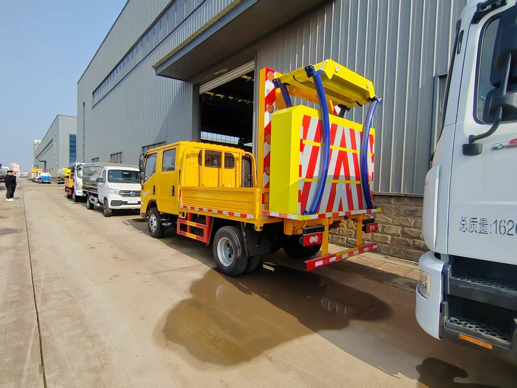 防撞车是一种专门设计用于保护施工现场和交通管理的车辆。它通常配备有警示灯和防撞装置,能够有效地减少交通事故的发生。防撞车在大型活动和施工现场的使用,可以为工作人员和过往车辆提供安全保障。它的主要作用包括: