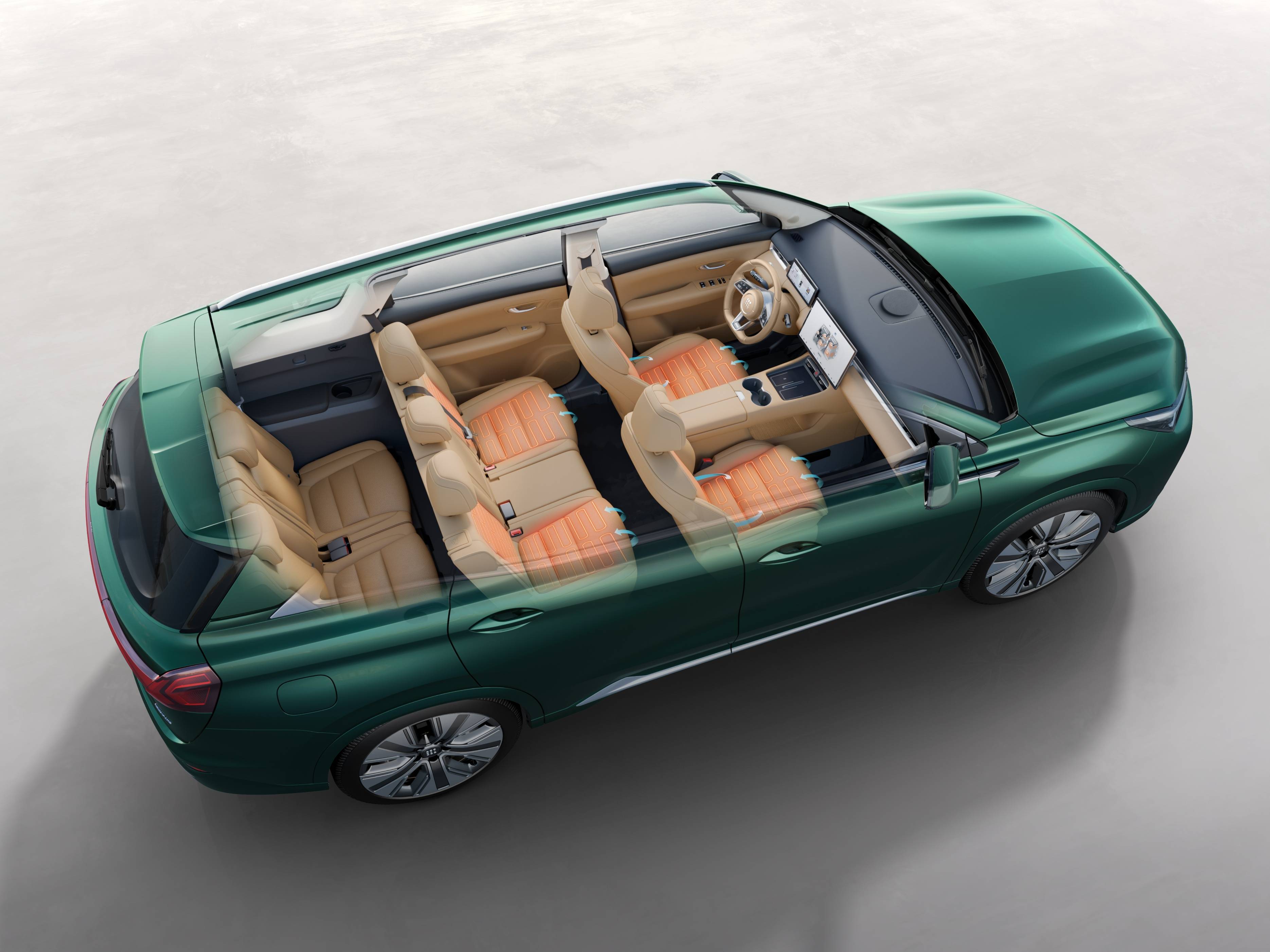 在舒适性配置方面,蓝电E5 PLUS先享版更是做到了同级少有。它支持全车加热功能,包括前排/后排座椅通风加热、方向盘加热,真正做到了“舒适平权”,无论身处车内哪个位置,都能感受到温暖与舒适。此外,车载KTV联动全民K歌70万曲库,配合13扬声器与悬浮式立体声中置扬声器、256色音乐律动氛围灯,打造出了360°沉浸式K歌空间。在旅途中,一家人可以尽情欢唱,享受欢乐时光,带来尊享豪华视听体验。