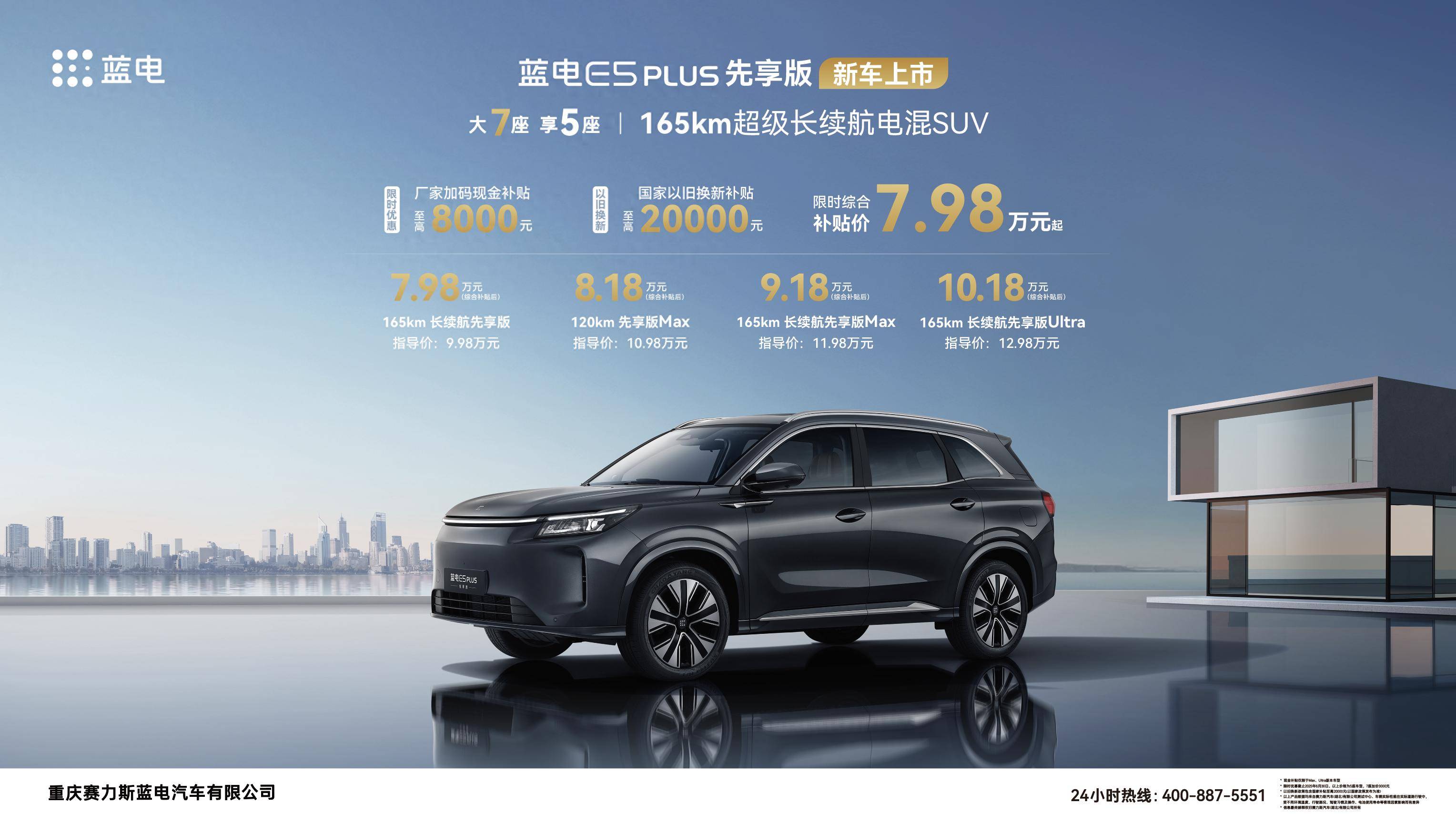 在家用插混SUV市场,搭载赛力斯动力的蓝电E5 PLUS先享版以7.98万元起的限时综合补贴价、165km真续航以及产品全面升级带来的越级体验,真正实现了“加配价更低”,成为家庭用户出行的理想之选。感兴趣的消费者可前往当地经销商处品鉴试驾,亲身感受蓝电E5 PLUS先享版的独特魅力,开启高品质家庭出行新篇章。