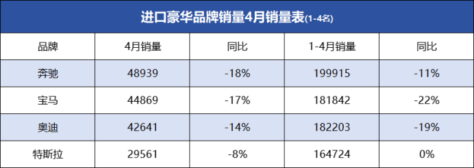 4月进口车销量TOP10仅2品牌正增长,路虎跌三成,奔驰再夺冠