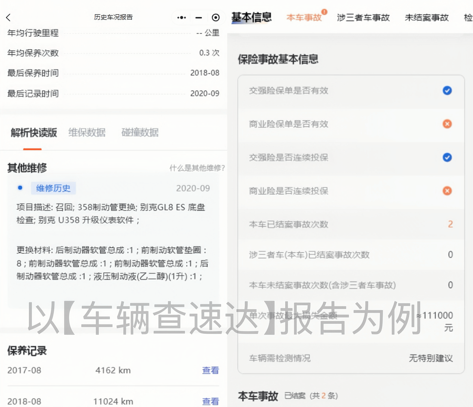 局限,查询门槛较高(非车主难操作),且只反映出险理赔相关的维修,常规保养记录无法获取。