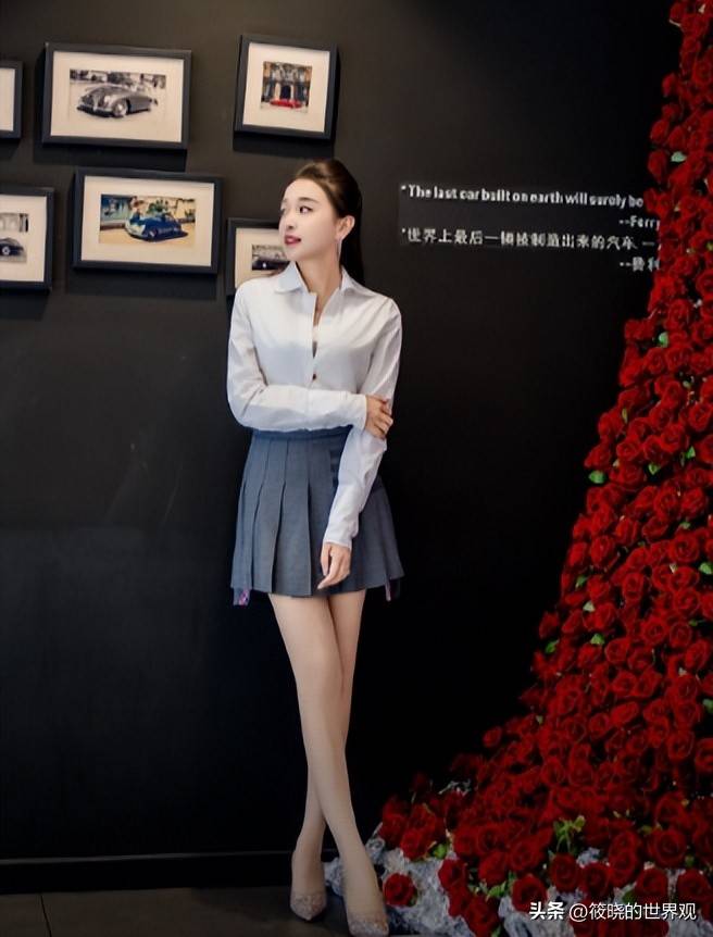 牟倩文有着典型山东美女的特征,身材高挑,身姿挺拔,站在车旁宛如模特一般。
