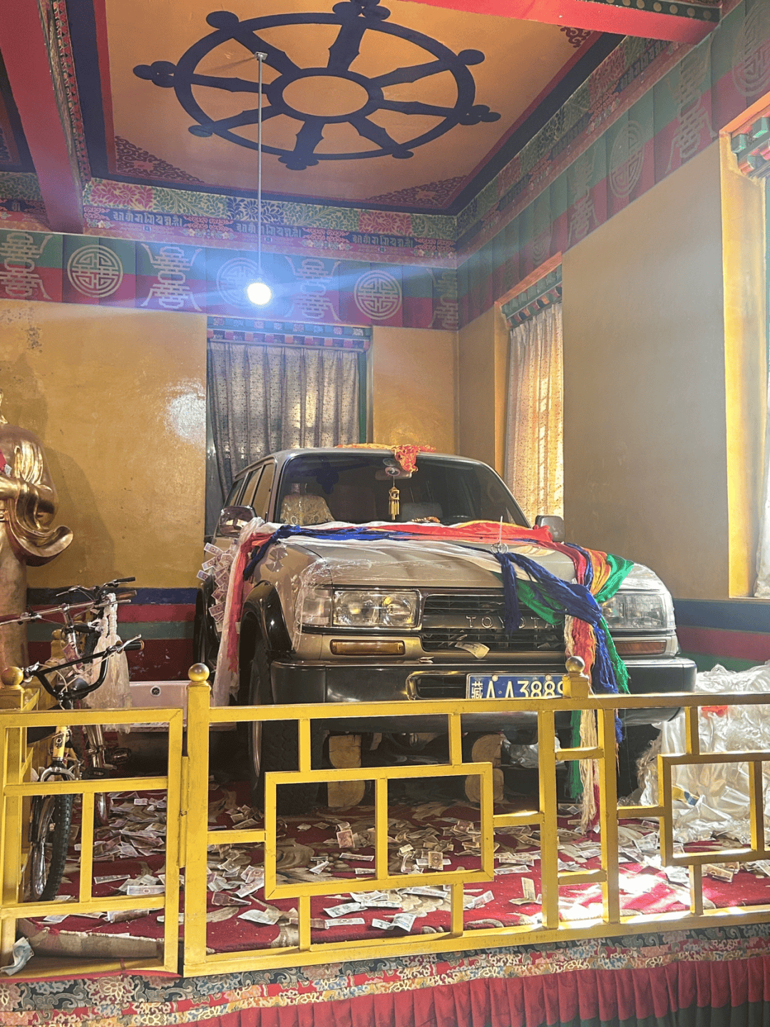 还有的游客去到了楚布寺,发现丰田直接被供奉起来。