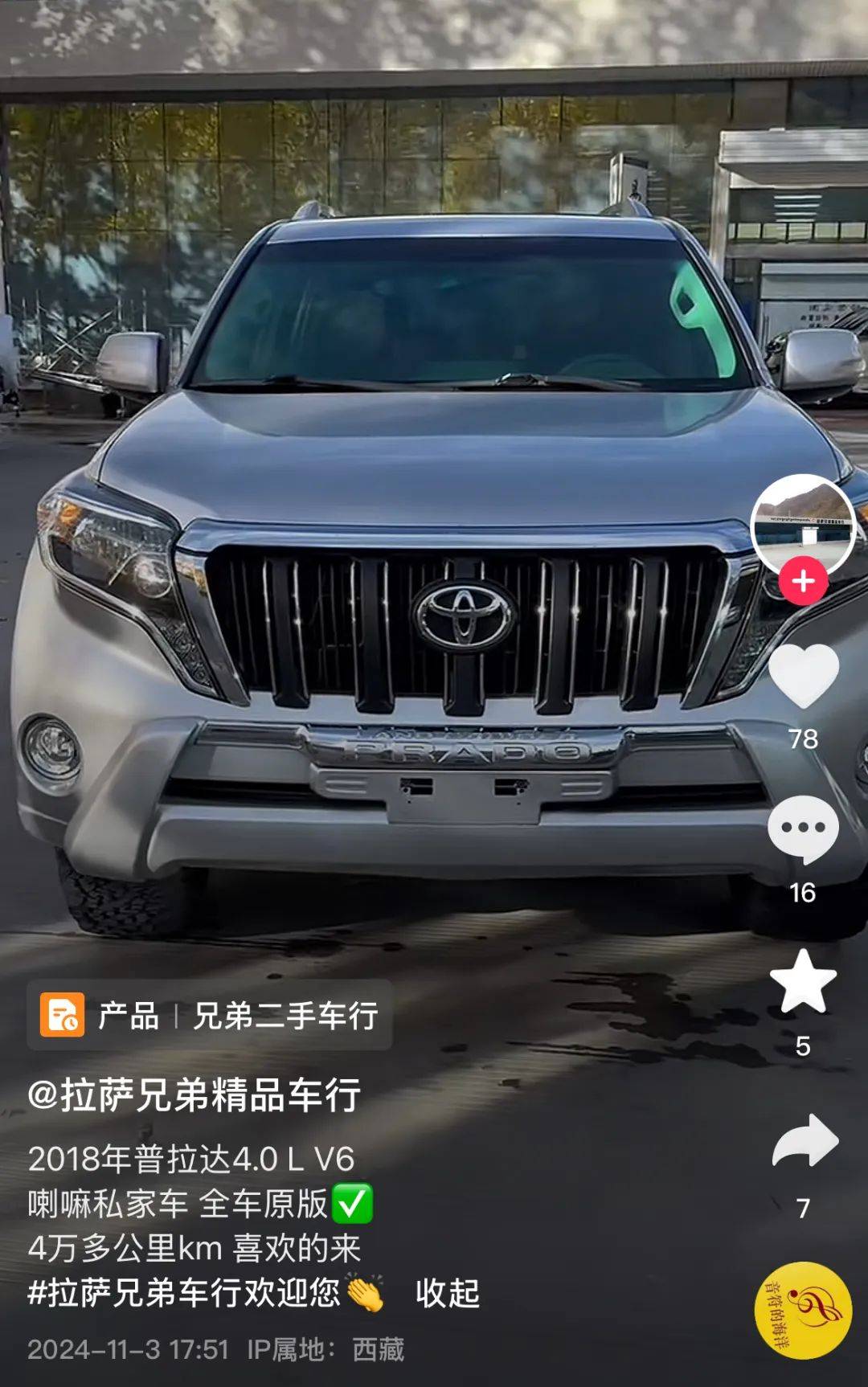 过几年上师开腻了霸道想换雷克萨斯570,还会委托这些车商帮忙把霸道出掉,“喇嘛一手普拉多,全车原版”。