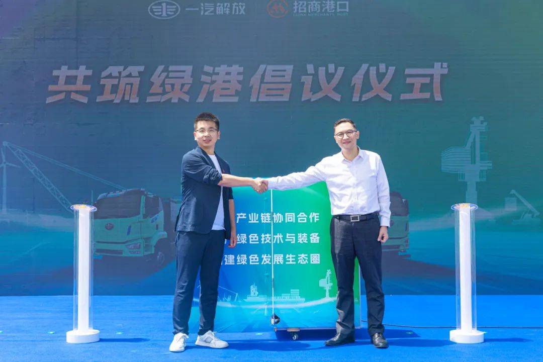 现场,一汽解放新能源车产品线党委书记、总经裴国权与招商局港口(华南)营运中心党委副书记、总经理黄颂华共同按下代表着“共筑绿港倡议”的启动光柱,以科技为笔、以绿色为墨,正式开启了“低碳港口新篇章”。“共筑绿港倡议”既是对当下绿色转型的行动宣言,更锚定未来港口生态共建的清晰方向。