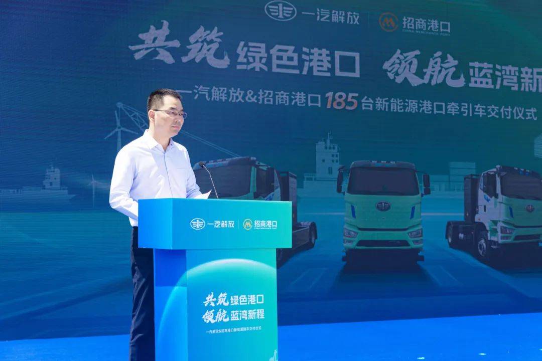 6月12日,以“共筑绿色港口 领航蓝湾新程”为主题的一汽解放&招商港口185台新能源港口牵引车交付仪式在招商局港口(华南)营运中心蛇口集装箱码头隆重举行。一汽解放党委委员、副总经理兼商用车开发院院长、党委书记王建宇出席仪式并讲话。此次交付仪式,标志着双方在新能源商用车场景化应用与绿色港口共建进程中,迈出关键且坚实的一步,也是一汽解放协同生态合作伙伴“启源芯动力”在终端补能运营、车电分离创新模式项目合作的又一成功案例。