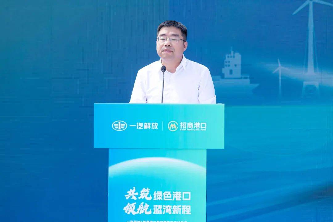 招商港口财务总监黄镇洲对一汽解放在绿色转型中给予的技术支持与产品赋能致以谢忱,表达了将与一汽解放协同践行国家战略的坚定决心。