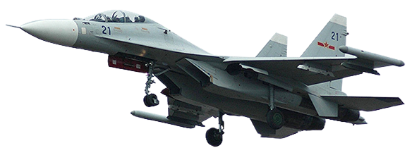歼-15是中国参考从乌克兰获得苏-33战斗机原型机T-10K-3号机以国产歼-11战斗机为基础进而研制和发展的重型双发舰载战斗机,实现了机翼折叠,全新设计了增升装置、起落装置和拦阻钩等系统, 实现了着舰要求的飞行特性。